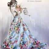 Lisa’s recent series of new works predominantly feature women in flamboyant, haute couture fashion, symbolising the melodrama and theatrics that often surface in everyday life.These figurative paintings often highlight and reflect her thoughts, experiences or observations and she has simply looked a little closer to home and found interest in the ordinary.